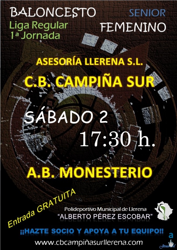 En primer lugar, a las 17:30 hs., el ASESORÍA LLERENA, S.L.-C.B.CAMPIÑA SUR, debutará en la liga Sénior Femenina frente al A.B. Monesterio. Primera jornada de la primera fase. Nuestras "llerenitas", que llevan trabajando desde el 23 de Agosto, tienen una ilusión enorme y muchas ganas de empezar la liga. Su entrenador, Manuel Robina, nos dice: "este proyecto con nuevo patrocinador (agradecer a Lolo Cordero su apuesta por el baloncesto) y con nuevas caras, tiene buena pinta. Siempre esperando que las lesiones nos respeten. Llevamos trabajando mucho y bien desde hace más de dos meses. Nuestros objetivos deben ser altos, pero para alcanzarlos debemos ser humildes, trabajar duro y ser un grupo sólido, unido y tener claro que todas vamos a una. Cada partido es importante, ya que este año las victorias son acumulables para la segunda fase, pero lejos de presionarnos, debe servirnos de motivación. Quiero aprovechar para felicitar públicamente a todas mis jugadoras, no ya solo por el trabajo realizado, sino también porque se superan y se hacen fuertes ante las adversidades extra deportivas que afectan al equipo. Estoy muy orgulloso de dirigir a este grupo. Lamentar la baja de Cristina García, que ha tenido que dejar el equipo por razones laborales. Así pues, que lancen el balón al aire, que estamos deseando empezar". El equipo estará formado por el entrenador ya mencionado, con Álvaro Curado y Arkaitz Chávez como asistentes. Jugadoras: Mariló Murillo (capitana), Mercedes Monterrubio, Inma Pachón, María Guerrero, Isabel Altozano, Xenia Sama, Elena Galán, Aurora Gata, Belén Mateos, Grani Murillo y Mati Moreno.