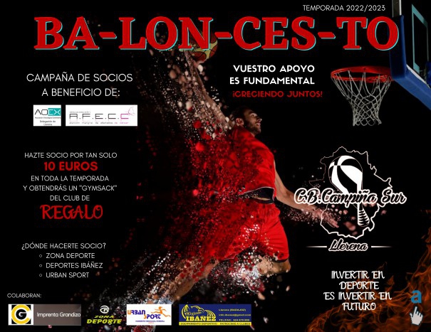 Desde hoy lunes 10 de octubre de 2022, queda abierta oficialmente la CAMPAÑA DE SOCIOS del C.B. CAMPIÑA SUR DE LLERENA TEMPORADA 2022/23, que tendrá vigencia toda la temporada