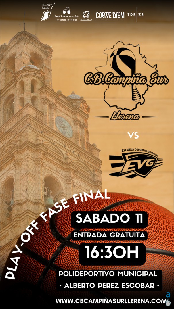 Nuestro SÉNIOR AUTO TRACTOR DEL SUR,S.L. LANDINI-JAMÓN Y SALUD juega en "LA TARDE DEL SÉNIOR" en el Pabellón Municipal de Llerena "ALBERTO PÉREZ". Eliminatoria a partido único, jugándose los 1/8 de FINAL DEL TROFEO DIPUTACIÓN DE BADAJOZ, frente a AA.AA. GUADALUPE. ¡¡¡OS ESPERAMOS!!! ¡¡¡A LLENAR EL PABELLÓN!!! A ANIMAR COMO SIEMPRE, CON DEPORTIVIDAD.