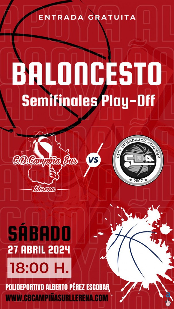 Nuestro SÉNIOR MASCULINO (esponsorizado por CALZADOS Y DEPORTES DEKY, JAMÓN Y SALUD y el EXCMO. AYUNTAMIENTO DE LLERENA),  jugará, el próximo sábado "LA TARDE DE LA BASE" en el  "ALBERTO PÉREZ", la vuelta de la SEMIFINAL DEL TROFEO DIPUTACIÓN DE BADAJOZ frente a C.B.A. SENIOR. El reto es complicado, ya que venimos con una desventaja de 53 puntos. Pero nuestro equipo lo dará todo. Y necesitamos de vuestro apoyo, como siempre, con el máximo respeto y deportividad. ¡¡¡A LLENAR EL "ALBERTO PÉREZ"!!! ¡¡¡OS ESPERAMOS!!!