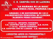 AGENDA DEL PRÓXIMO FIN DE SEMANA, EL SÁBADO CON "LA MAÑANA DE LA BASE" EN EL "ALBERTO PÉREZ" PARA LOS EQUIPOS FEMENINOS DE LA BASE, LOS MASCULINOS JUGARÁN EN MONESTERIO. EL SÉNIOR MASCULINO JUGARÁ EN LA PISTA DE AA.AA. SAN...