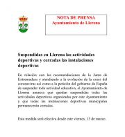 MEDIDAS ADOPTADAS POR EL EXCMO. AYUNTAMIENTO DE LLERENA CON RESPECTO A LA ACTIVIDAD CULTURAL Y DEPORTIVA MUNICIPAL.
